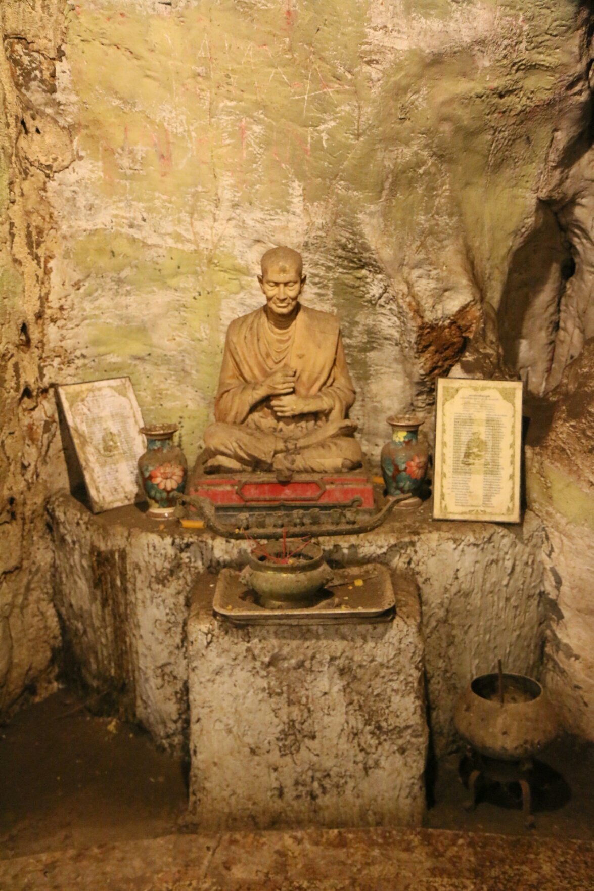 방콕으로 돌아갈 때는 기차를 타고 돌아가기로 한다. 기차편을 알아보니 2시 40분. 시간이 1시간 넘게 남았다. 보트를 타기로 한다. 한 시간에 800바트. 우리 나름으로 한 번 깎았으면 더 이상 깎지 않는다는 묵시적 원칙이 정해졌다. 이 할아버지는 전혀 에누리가 없다. 그럼 그냥 타는 수밖에. 보트는 어제 수상시장 보트와 같았으나, 속도감은 전혀 달랐다. 우리가 타고 온 버스보다 빠르다는 느낌. 강물에 부딪힌 보트가 퉁퉁 튕긴다. 도착한 곳은 동굴사원. 아무도 없이 고즈넉하다. 손님들도 거의 없는 듯. 툭툭을 운영하는 아저씨는 별 표정도 없다. 사원 앞에 내리자 승려들이 입장료를 받는다. 이들의 할 일은 입장료 받는 것과 마당 쓰는 일 정도일 것 같다. 동굴 바깥에는 콰이강의 다리를 만들었던 포로들의 사진이 전시되어 있다. 전시장은 아마도 당시 포로들이 묵었던 수용소를 재현한 것 같다. 참혹한 몰골. 일본은 자신들의 야욕을 위해 이 먼 곳까지 왔던 것이다. 목적을 이루기 위해 인간이기를 포기하는 야만성이 두렵다.